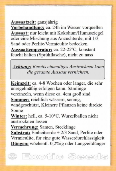 Coddia rudis, 10-100 Samen