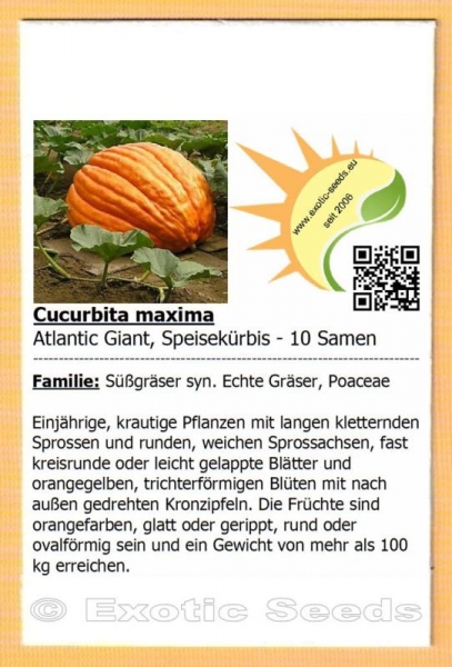 Cucurbita maxima * Speisekürbis 'Atlantic Giant' (Pumpkin) * 10 Samen