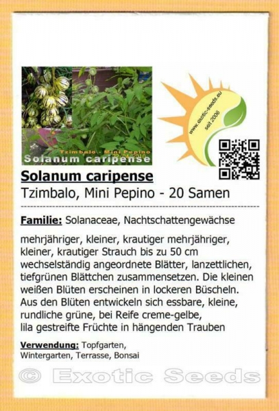 mehrjähriger, kleiner, krautiger Strauch bis zu 50 cm mit wechselständig angeordneten Blättern, die sich sowohl aus paarig als auch unpaarig angeordneten, lanzettlichen, tiefgrünen Blättchen zusammensetzen. Die kleinen weißen Blüten erscheinen in lockeren Büscheln. Aus den Blüten entwickeln sich essbare, kleine, rundliche grüne, bei Reife creme-gelbe, lila gestreifte Früchte in hängenden Trauben.