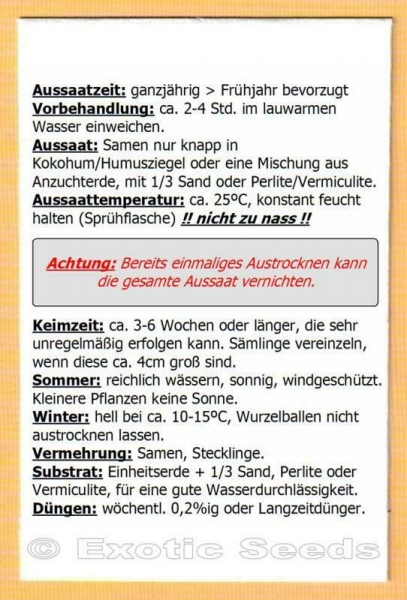 (Saatgut ist verpackt in einer Pergamyn-Saattüte mit umseitiger Aussaat und Pflegeanleitung für eine erfolgreiche Anzucht)