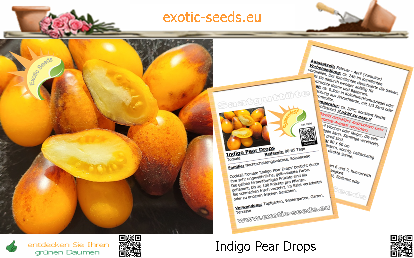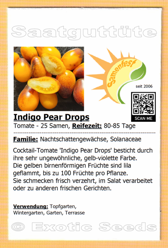 Tomate * Indigo Pear Drops * Buschtomate * birnenförmige Kirschtomate * 25 Samen