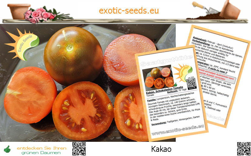 Gourmet-Tomate mit unglaublich leckerem, würzigem Geschmack, ca. 140 Gramm schwere, schwarzbraune Früchte, besonders lange haltbar. Das Auge isst mit, bei dieser tollen Tomatenschönheit trifft das besonders zu. Sichere, gute Ernte.