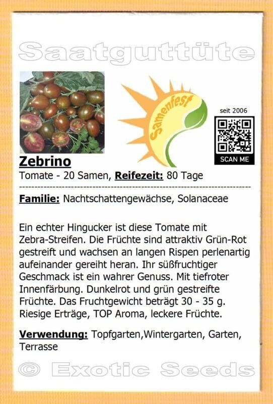 Tomate * Zebrino * dunkelrot * grün gestreift * 20 Samen